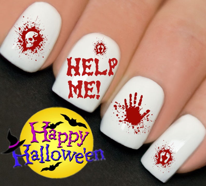 Buy 20 Halloween Nails Blood Splatter Help Me Skull Hands Nail Art Online In India Etsy