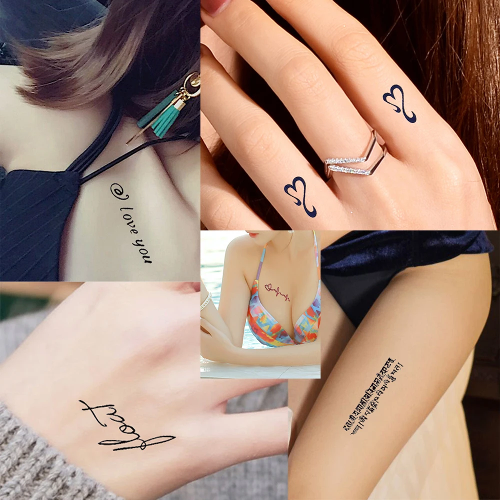 1 Piece Black Alphabet Pattern Temporary Tattoo Finger Wrist Stocking Body Art Sticker I Love You Faith Heart Decal Paper Word